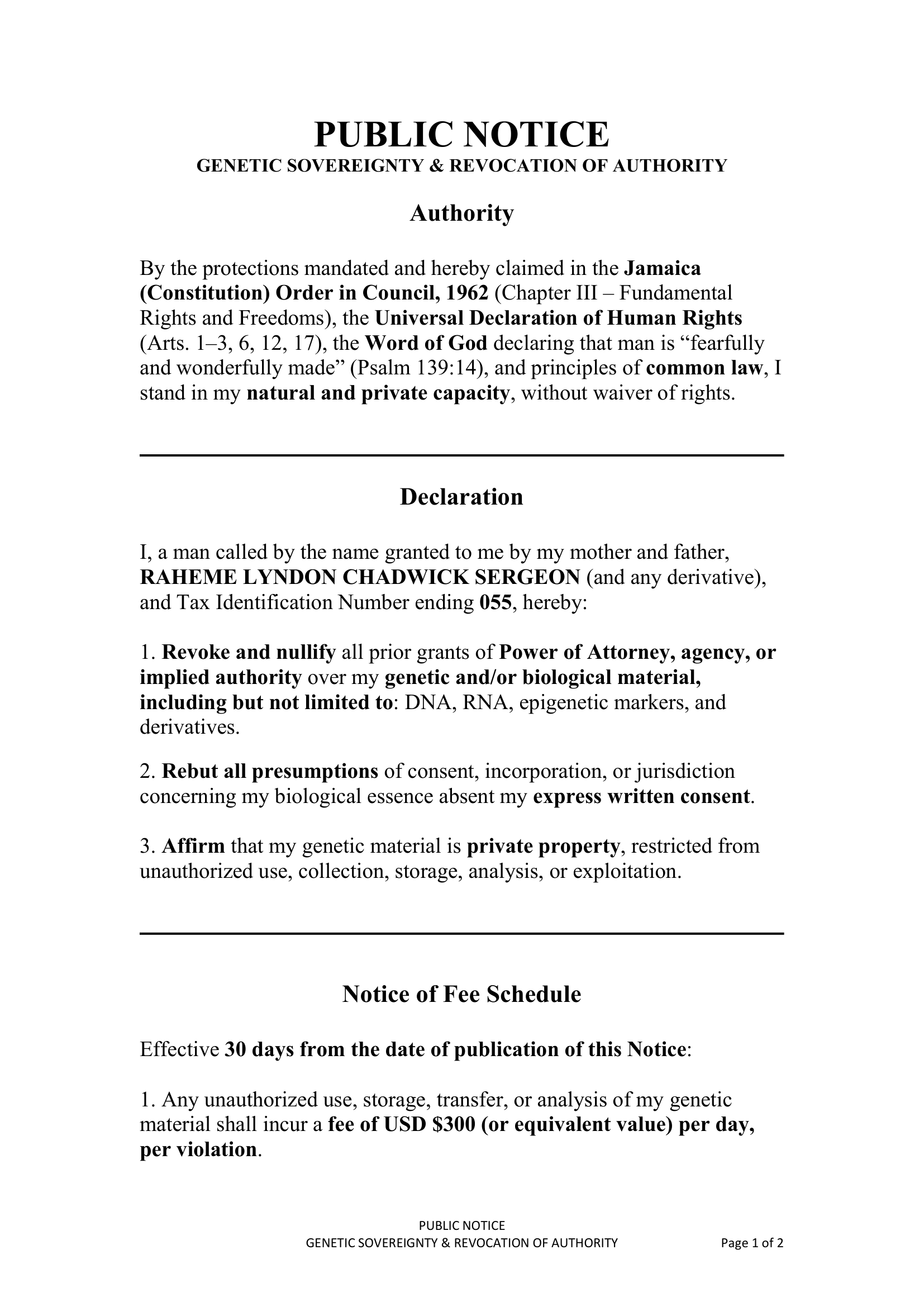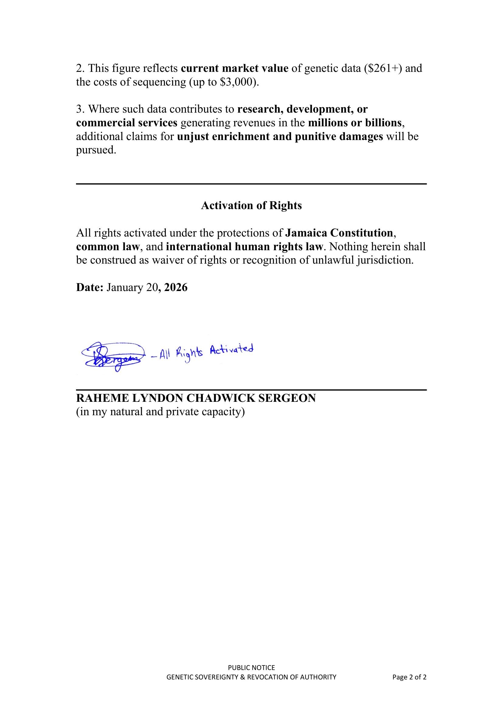 February 12, 2026 – Public Notice – Genetic Sovereignty and Revocation of Authority – RS-DEC0004