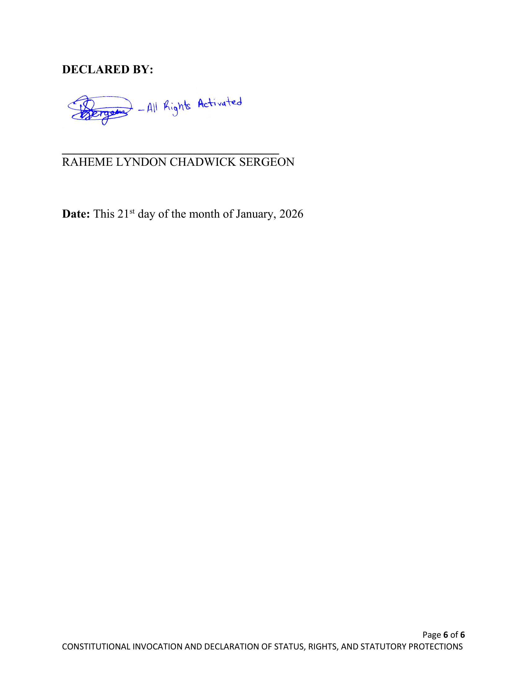 February 12, 2026 – Constitutional Invocation and Declaration of Status, Rights, and Statutory Protections – RS-DEC0008