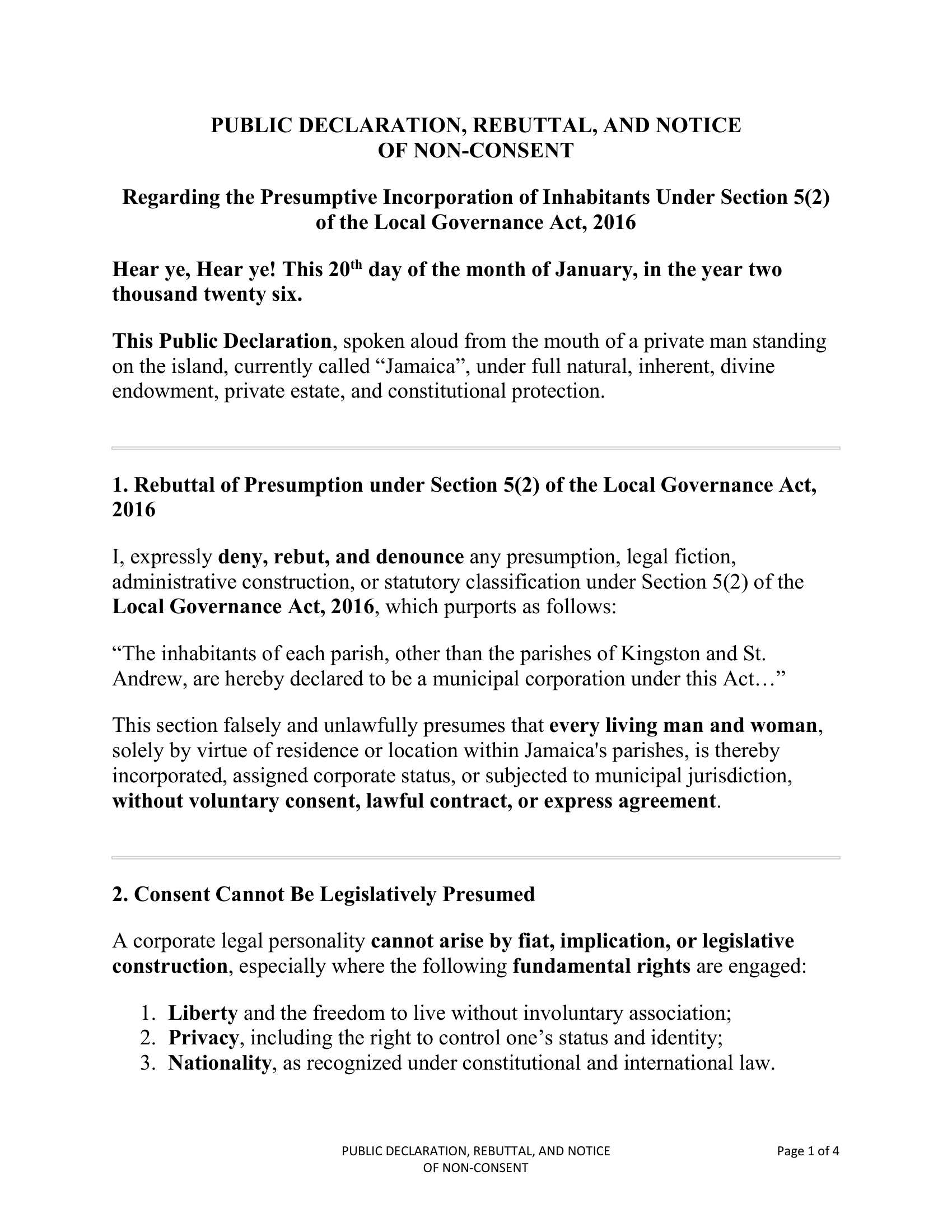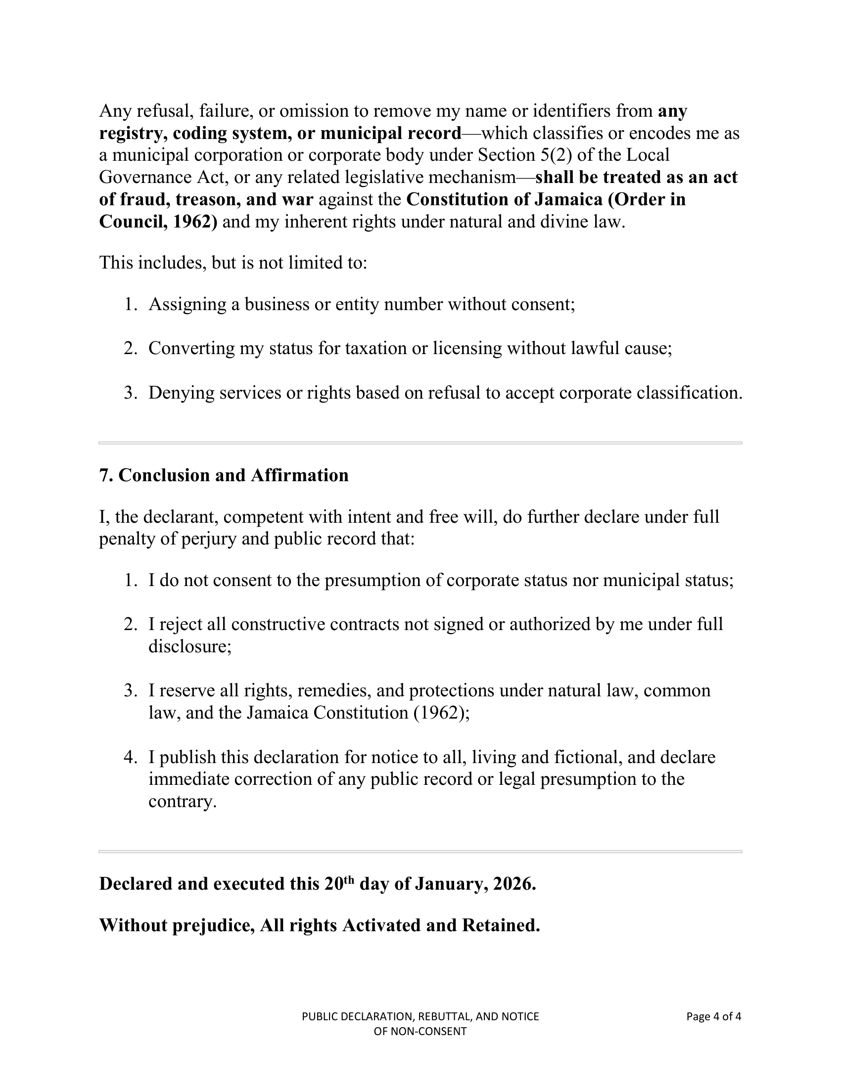 February 12, 2026 – Public Declaration, Rebuttal, and Notice of Non-Consent – RS-DEC0002