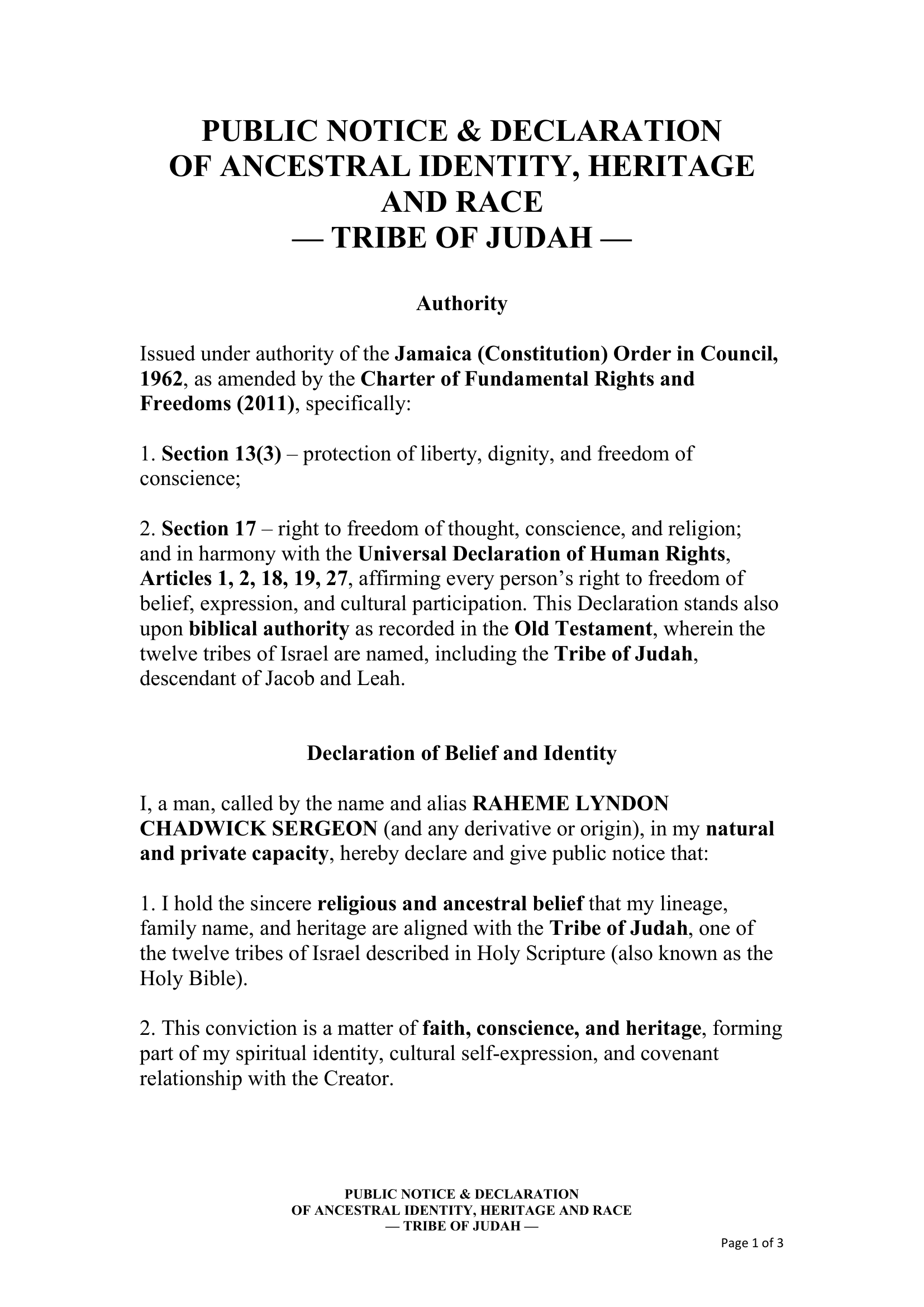 February 12, 2026 – Public Notice and Declaration of Ancestral Identity, Heritage and Race – RS-DEC0006