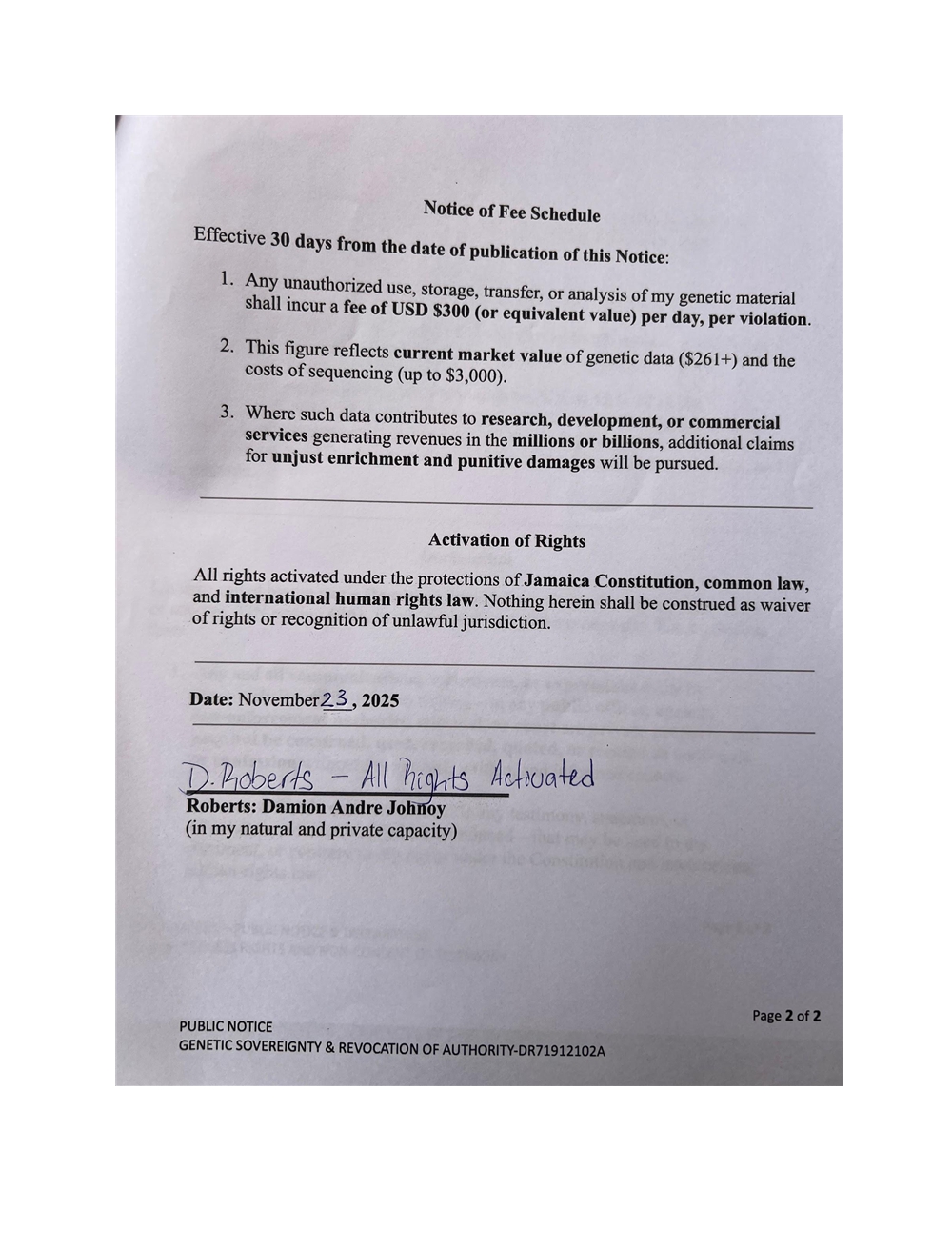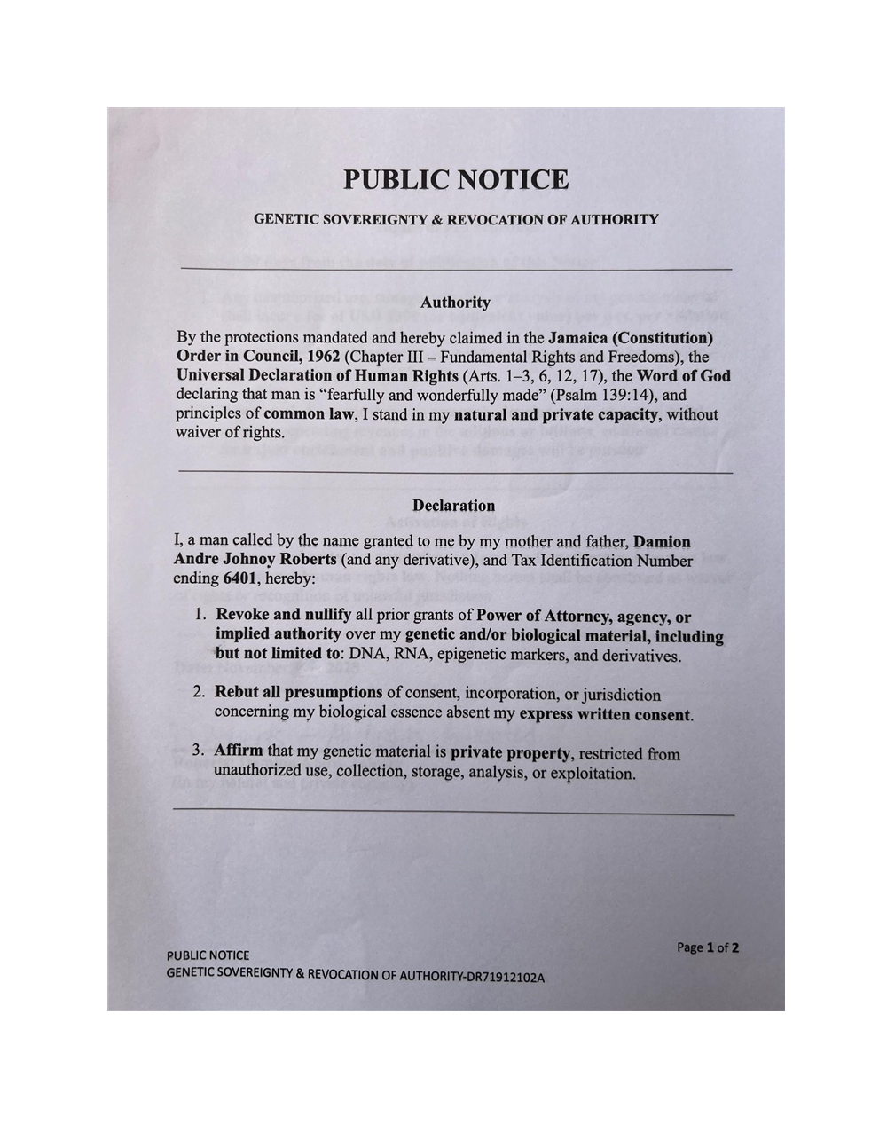 Notice #2- Genetic Sovereignty And Revocation Of Authority- DR71912102A