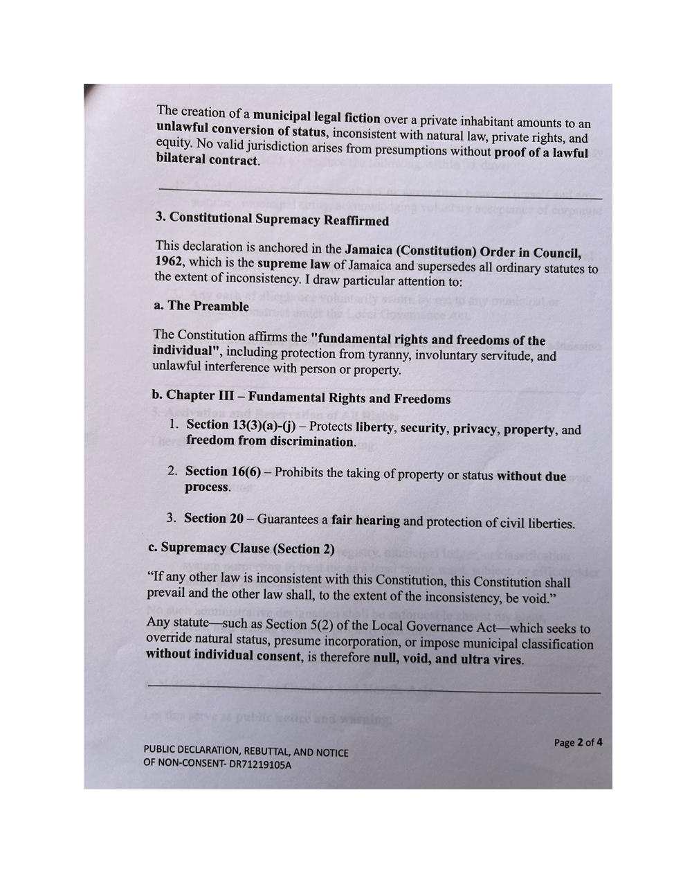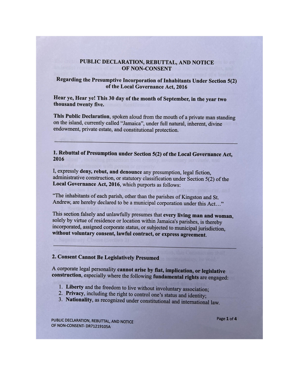 Notice #6 – Public Declaration And Rebuttal And Notice Of Non-Consent, Regarding The Presumptive Incorporation Inhabitants Under Section 5(2) Of The Local Governance Act 2016- DR71912105A