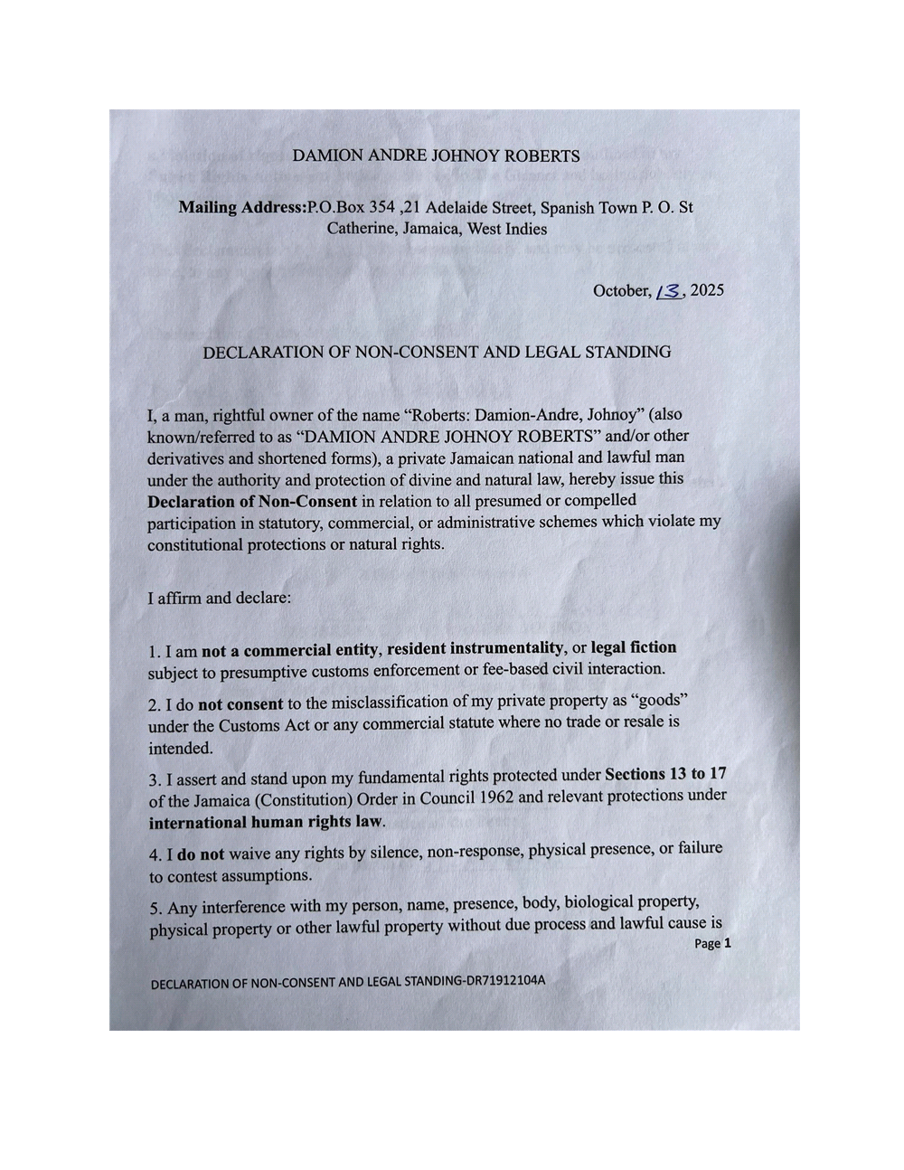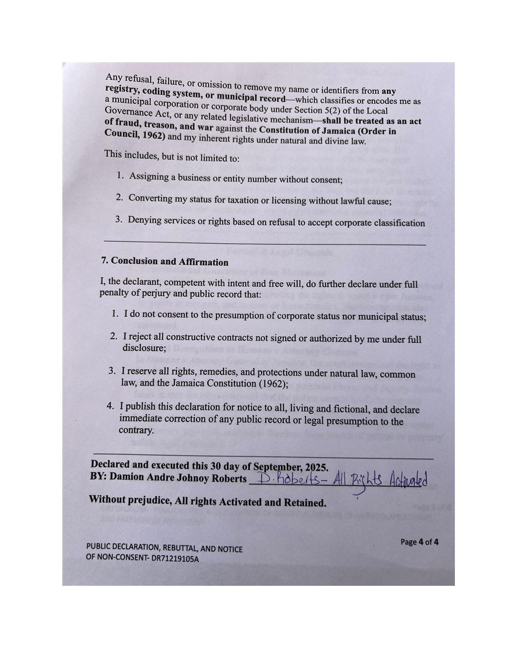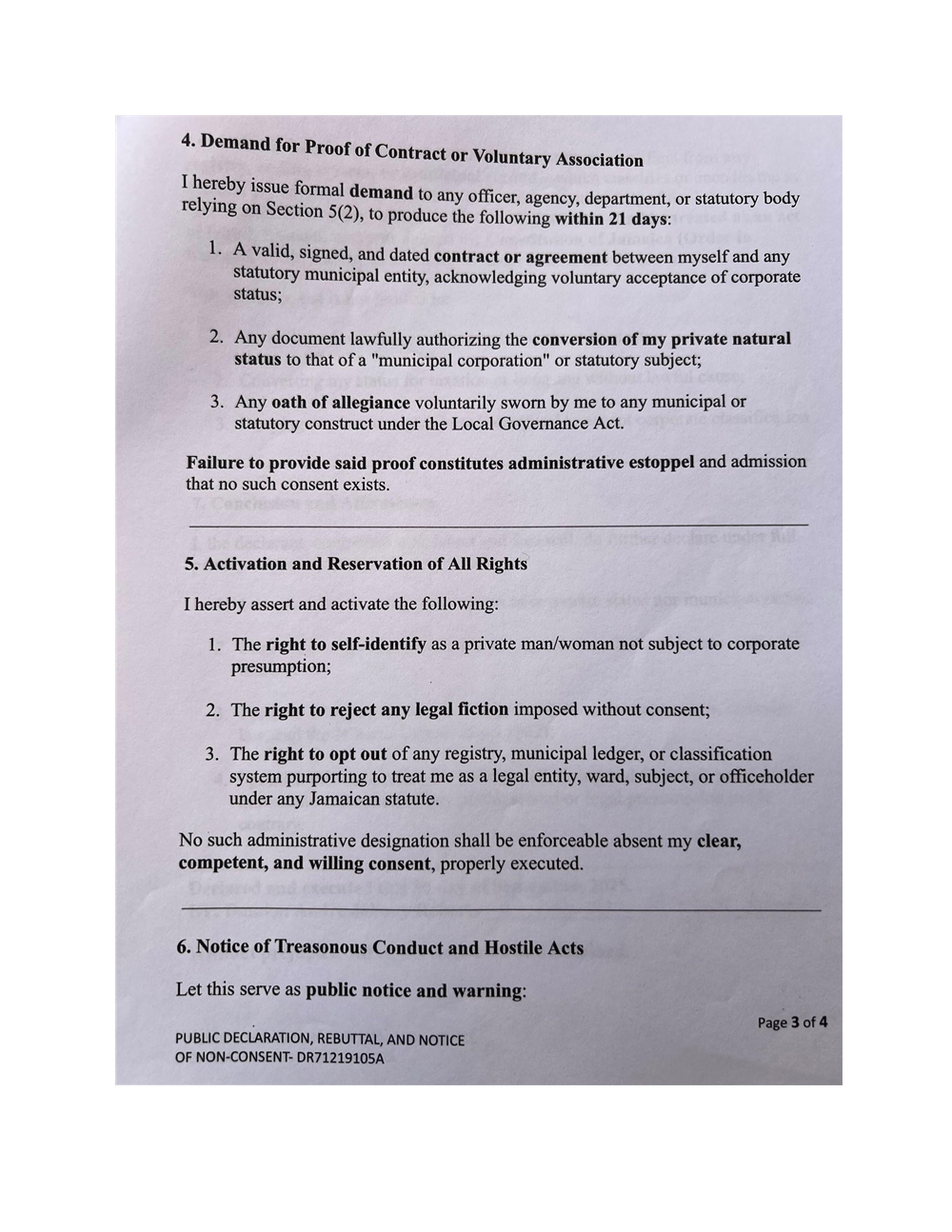 Notice #9 – Declaration Of Non-Consent And Legal Standing – DR71912104A
