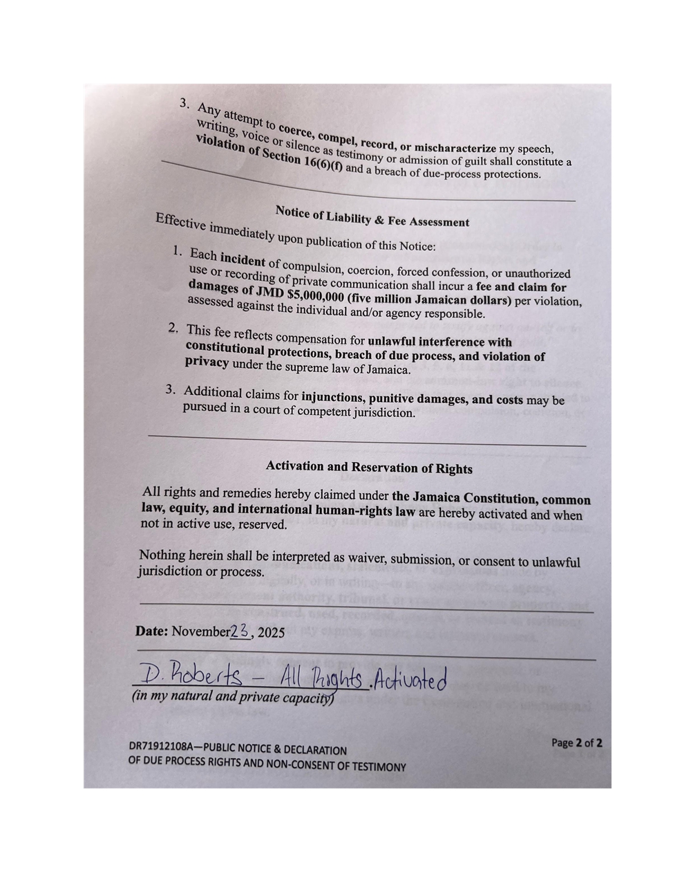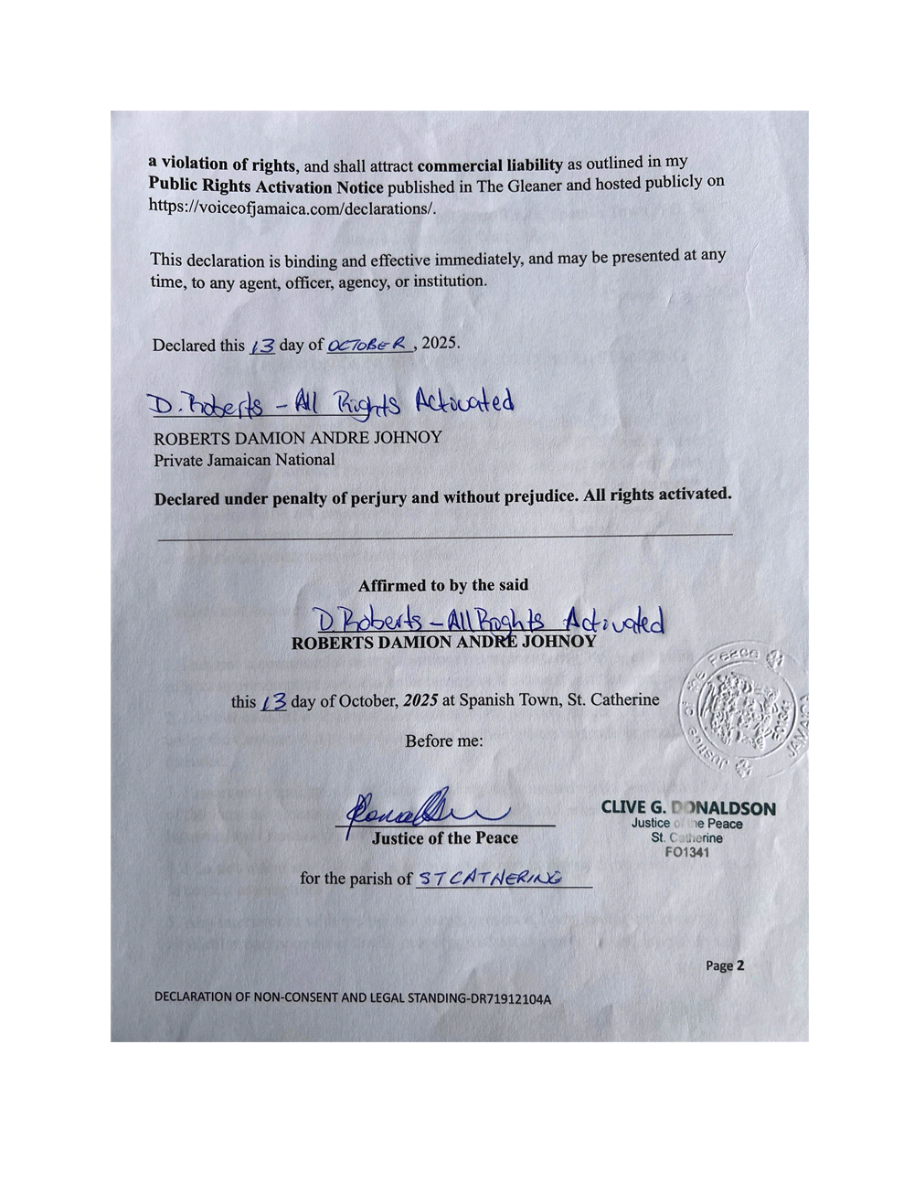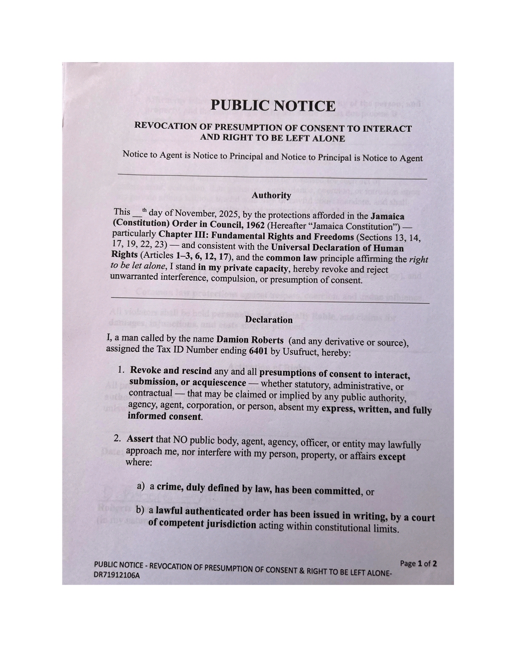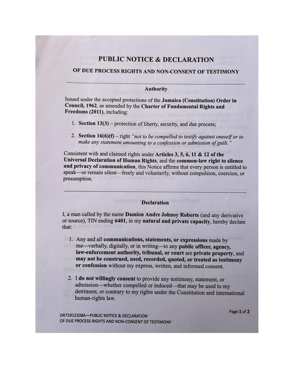 Notice #9 – Declaration Of Non-Consent And Legal Standing – DR71912104A