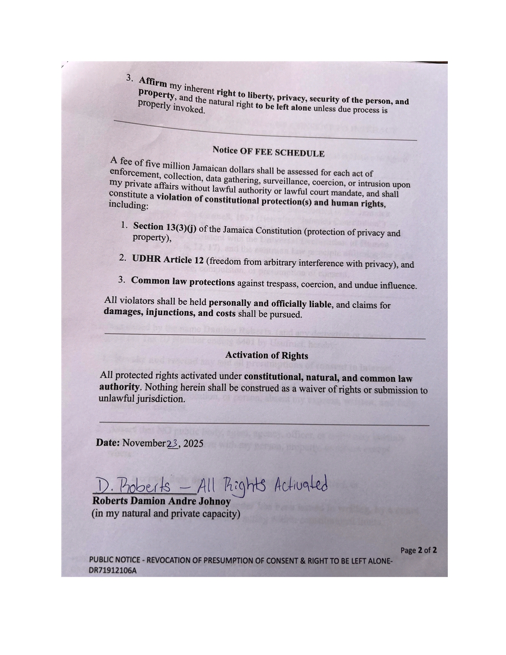 Notice #4- Revocation Of Presumption Of Consent To Interact And Right To Be Left Alone- DR71912106A