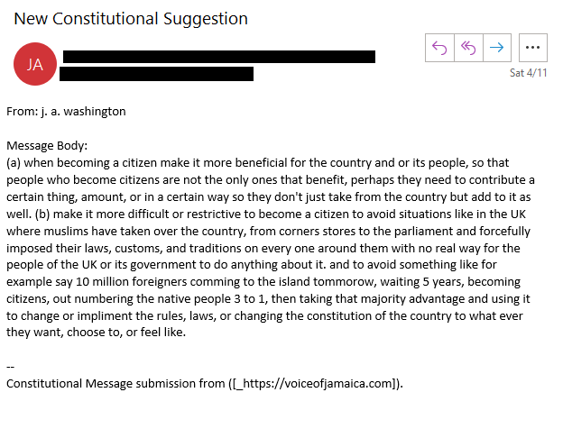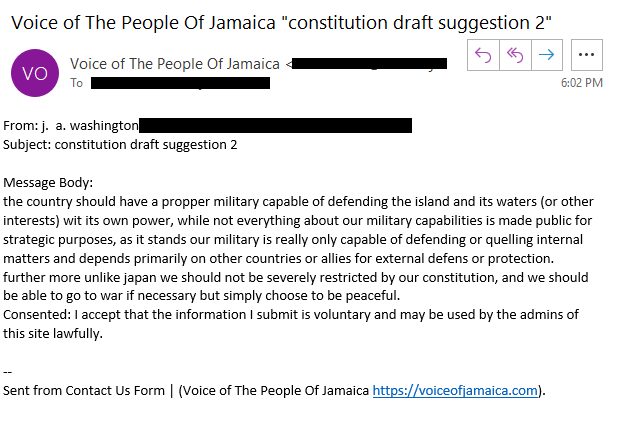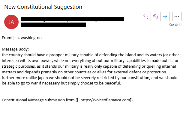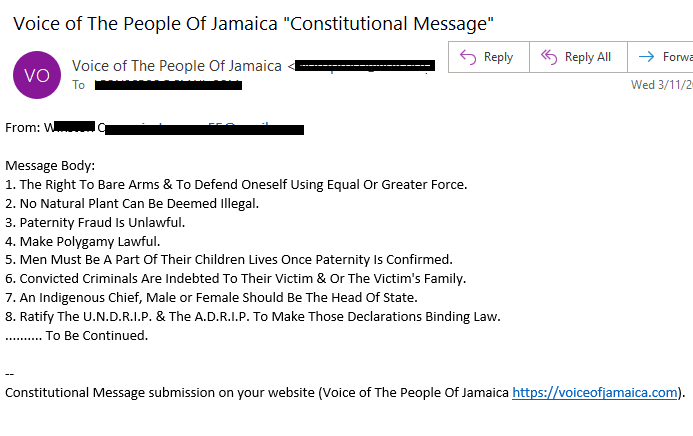 (A Constitutional Assembly in Accordance with the Jamaica (Constitution) Order in Council 1962) | Charter of Rights – Section 13(3)(e), (f), (k) | Non-commercial | Not for Hire | No Trade | Not For Profit | Off Duty | Public Assembly Forum